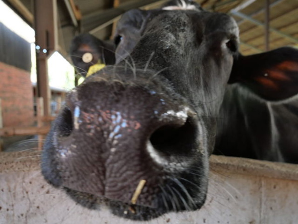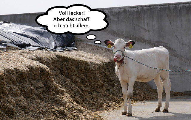 Warum kauen Kühe eigentlich viel öfter und länger als wir? Richtig: sie kauen die Nahrung zweimal.
