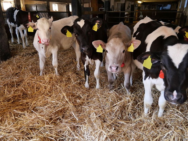 Lotti lebt in einer Gruppe mit gleichaltrigen Kälbern im Kälberstall. Hier seht ihr sie mit ihren Freundinnen. Wenn sie spielen und toben, kann es manchmal ziemlich wild hergehen.