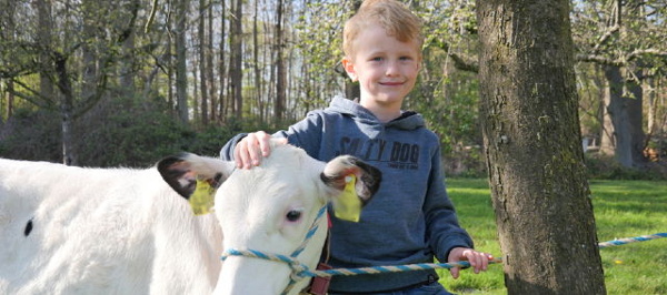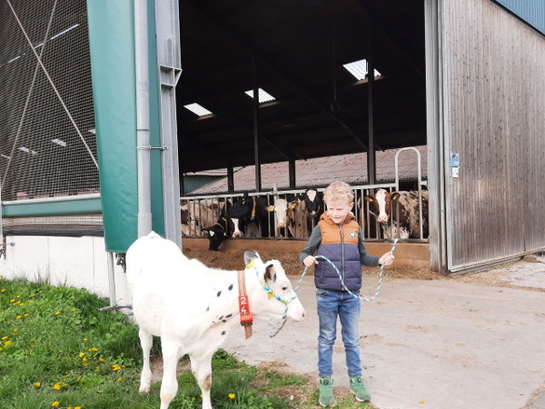 Georg ist 7 Jahre alt. Zu seinem 7. Geburtstag bekam er das kleine Kalb Lotti geschenkt. Lotti war zu diesem Zeitpunkt gerade vier Wochen alt war.